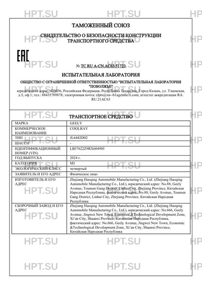 | Предприятие-изготовитель | Zhejiang Haoqing Automobile Manufacturing Co., Ltd. (Zhejiang Haoqing Automobile Manufacturing Co., Ltd.), юридический адрес: No.88, Geely Avenue, Toumen Gang District, Linhai City, Zhejiang Province, Китайская Народная Республика, фактический адрес: No.88, Geely Avenue, Toumen Gang District, Linhai City, Zhejiang Province, Китайская Народная Республика |