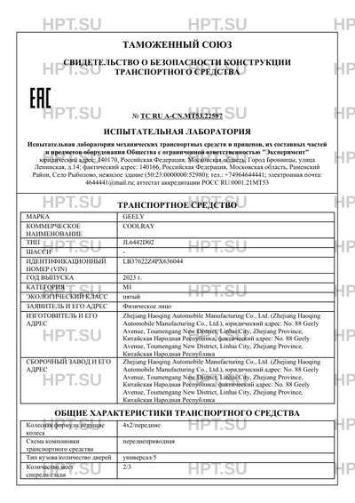 | Коммерческое наименование | COOLRAY |