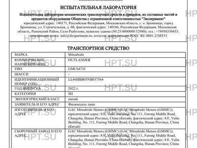 Предприятие-изготовитель GAC Mitsubishi Motors (GMMC) (GAC Mitsubishi Motors (GMMC)), юридический адрес: 8/F, Valin Building, No. 111, Furong Middle Road, Changsha, Hunan Province, China (Китай), фактический адрес: 8/F, Valin Building, No. 111, Furong Middle Road, Changsha, Hunan Province, China (Китай)