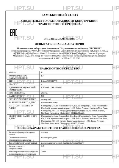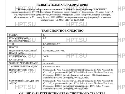 | Предприятие-изготовитель | Chongqing Li Auto Automobile Co., Ltd. (Chongqing Li Auto Automobile Co., Ltd.), юридический адрес: 1539, Jinkai Avenue, Northern New Area, Chongqing, 401122, Китай., фактический адрес: 1539, Jinkai Avenue, Northern New Area, Chongqing, 401122, Китай. |