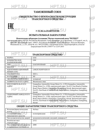 | Номер документа | ТС RU А-CN.МТ77.53769 |