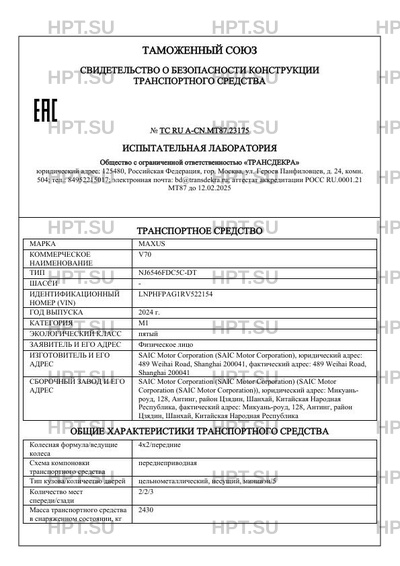 Полное СБКТС ТС RU A-CN.МТ87.23175
