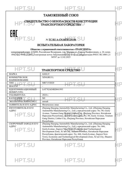| Предприятие-изготовитель | Zhejiang Haoqing Automobile Manufacturing Co., Ltd. (Zhejiang Haoqing Automobile Manufacturing Co., Ltd.), юридический адрес: No. 88, Geely Avenue, Toumen Gang District, Linhai City, Zhejiang Province, Китайская Народная Республика, фактический адрес: No. 88, Geely Avenue, Toumen Gang District, Linhai City, Zhejiang Province, Китайская Народная Республика |