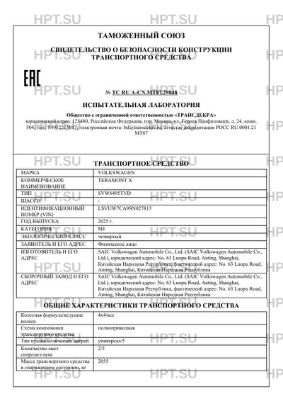 | Тип ТС | SVW6495TVD |