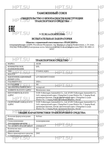 | Марка ТС | AUDI |