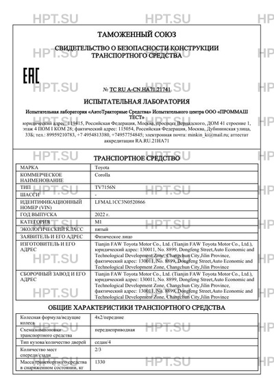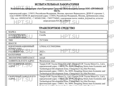 | Предприятие-изготовитель | Tianjin FAW Toyota Motor Co., Ltd. (Tianjin FAW Toyota Motor Co., Ltd.), юридический адрес: 130011, No. 8899, Dongfeng Street,Auto Economic and Technological Development Zone, Changchun City,Jilin Province, фактический адрес: 130011, No. 8899, Dongfeng Street,Auto Economic and Technological Development Zone, Changchun City,Jilin Province |