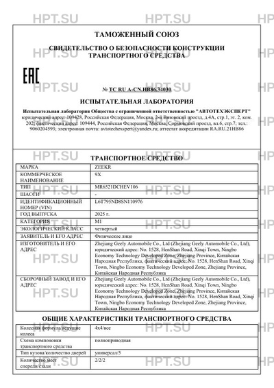 | Марка ТС | ZEEKR |
