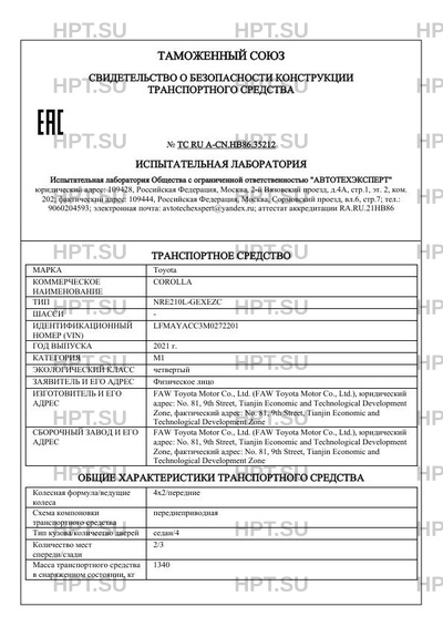 | Предприятие-изготовитель | FAW Toyota Motor Co., Ltd. (FAW Toyota Motor Co., Ltd.), юридический адрес: No. 81, 9th Street, Tianjin Economic and Technological Development Zone, фактический адрес: No. 81, 9th Street, Tianjin Economic and Technological Development Zone |