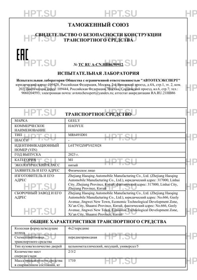 | Предприятие-изготовитель | Zhejiang Haoqing Automobile Manufacturing Co., Ltd. (Zhejiang Haoqing Automobile Manufacturing Co., Ltd.), юридический адрес: 317000, Linhai City, Zhejiang Province, Китай, фактический адрес: 317000, Linhai City, Zhejiang Province, Китай |