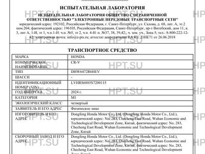 | Предприятие-изготовитель | Dongfeng Honda Motor Co., Ltd. (Dongfeng Honda Motor Co., Ltd.), юридический адрес: No. 283, Checheng East Road, Wuhan Economic and Technological Development Zone, Китай, фактический адрес: No. 283, Checheng East Road, Wuhan Economic and Technological Development Zone, Китай |
