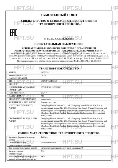 | Коммерческое наименование | CR-V |