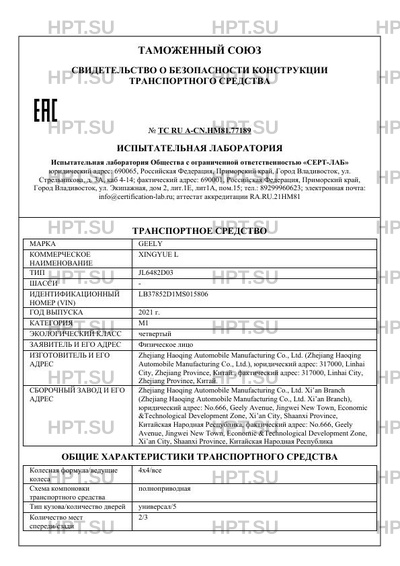 | Категория ТС | M1 |