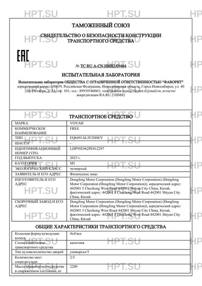 | Тип ТС | EQ6491AL5F2SHEV |