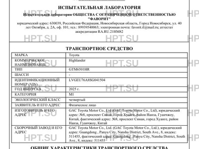 Предприятие-изготовитель GAC Toyota Motor Co., Ltd (GAC Toyota Motor Co., Ltd), юридический адрес: №8, проспект Синан, город Хуанге, район Нанза, Гуанчжоу, Китай, фактический адрес: №8, проспект Синан, город Хуанге, район Нанза, Гуанчжоу, Китай