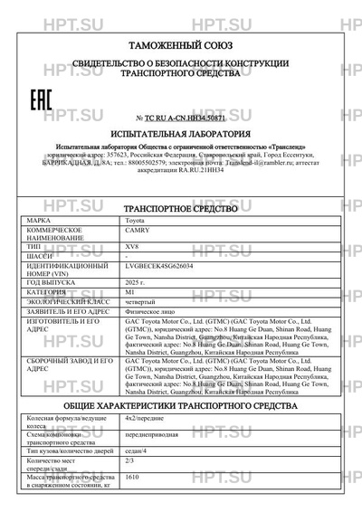 | Коммерческое наименование | CAMRY |