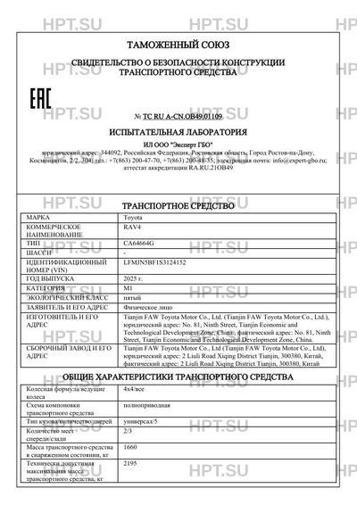 | Предприятие-изготовитель | Tianjin FAW Toyota Motor Co., Ltd. (Tianjin FAW Toyota Motor Co., Ltd.), юридический адрес: No. 81, Ninth Street, Tianjin Economic and Technological Development Zone, China., фактический адрес: No. 81, Ninth Street, Tianjin Economic and Technological Development Zone, China. |