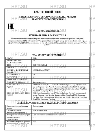 | Номер документа | ТС RU А-CN.ОВ60.05402 |