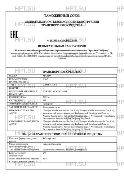 | Коммерческое наименование | CX-5 |
