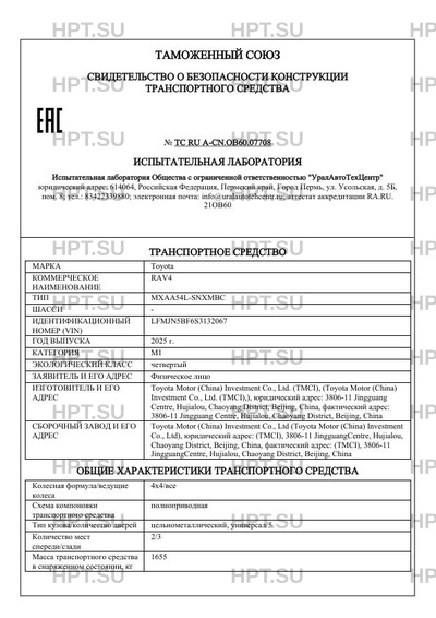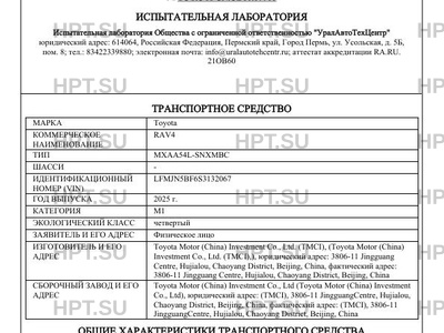 | Предприятие-изготовитель | Toyota Motor (China) Investment Co., Ltd. (TMCI), (Toyota Motor (China) Investment Co., Ltd. (TMCI),), юридический адрес: 3806-11 Jingguang Centre, Hujialou, Chaoyang District, Beijing, China, фактический адрес: 3806-11 Jingguang Centre, Hujialou, Chaoyang District, Beijing, China |