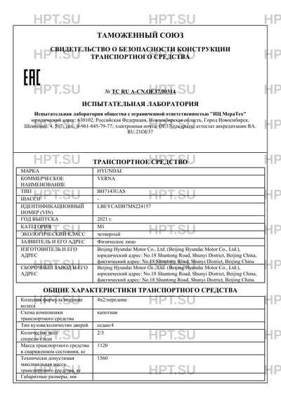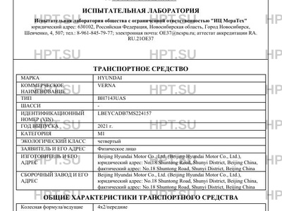 Предприятие-изготовитель Beijing Hyundai Motor Co., Ltd. (Beijing Hyundai Motor Co., Ltd.), юридический адрес: No.18 Shuntong Road, Shunyi District, Beijing China, фактический адрес: No.18 Shuntong Road, Shunyi District, Beijing China