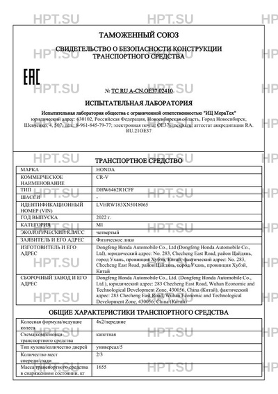 | Коммерческое наименование | CR-V |