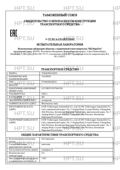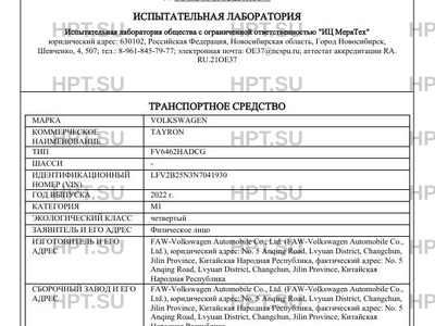 Предприятие-изготовитель FAW-Volkswagen Automobile Co., Ltd.