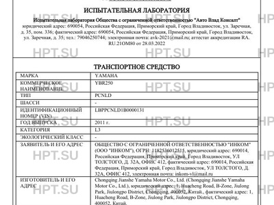 | Предприятие-изготовитель | Chongqing Jianshe Yamaha Motor Co., Ltd. (Chongqing Jianshe Yamaha Motor Co., Ltd.), юридический адрес: 1, Huacheng Road, B-Zone, Jiulong Park, Jiulongpo District, Chongqing, 400052, Китай., фактический адрес: 1, Huacheng Road, B-Zone, Jiulong Park, Jiulongpo District, Chongqing, 400052, Китай. |