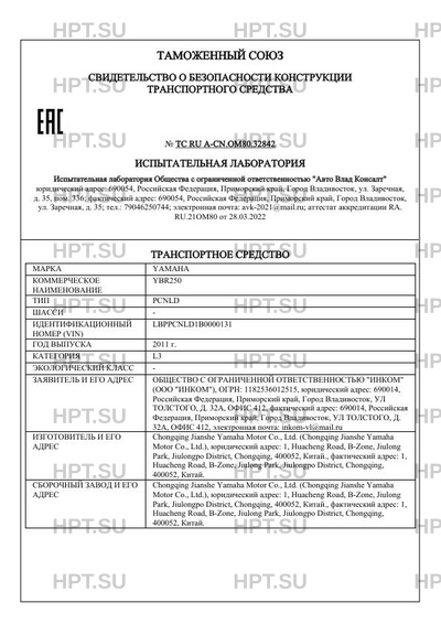 | Марка ТС | YAMAHA |