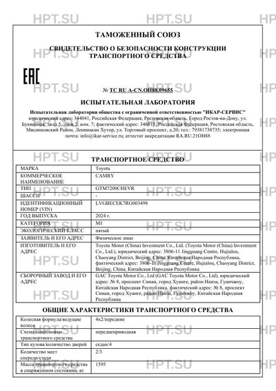 Предприятие-изготовитель Toyota Motor (China) Investment Co., Ltd. (Toyota Motor (China) Investment Co., Ltd.), юридический адрес: 3806-11 Jingguang Centre, Hujialou, Chaoyang District, Beijing, China, Китайская Народная Республика, фактический адрес: 3806-11 Jingguang Centre, Hujialou, Chaoyang District, Beijing, China, Китайская Народная Республика