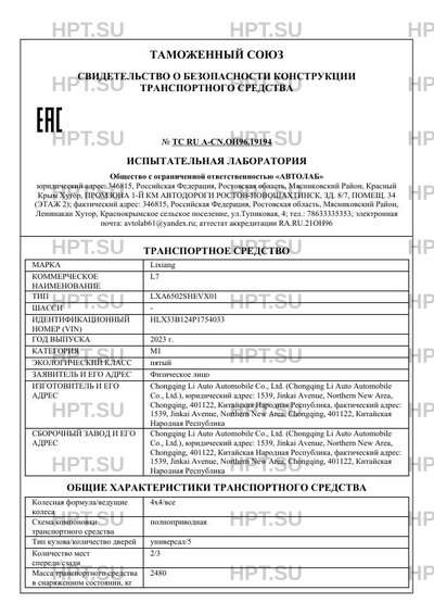 | Предприятие-изготовитель | Chongqing Li Auto Automobile Co., Ltd. (Chongqing Li Auto Automobile Co., Ltd.), юридический адрес: 1539, Jinkai Avenue, Northern New Area, Chongqing, 401122, Китайская Народная Республика, фактический адрес: 1539, Jinkai Avenue, Northern New Area, Chongqing, 401122, Китайская Народная Республика |