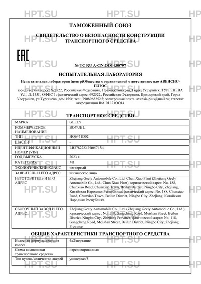 Предприятие-изготовитель Zhejiang Geely Automobile Co., Ltd. Chun Xiao Plant (Zhejiang Geely Automobile Co., Ltd. Chun Xiao Plant), юридический адрес: No. 188, Chunxiao Road, Chunxiao Town, Beilun District, Ningbo City, Zhejiang, Китайская Народная Республика, фактический адрес: No. 188, Chunxiao Road, Chunxiao Town, Beilun District, Ningbo City, Zhejiang, Китайская Народная Республика