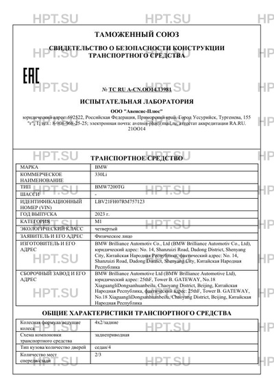 | Предприятие-изготовитель | BMW Brilliance Automotiv Co., Ltd (BMW Brilliance Automotiv Co., Ltd), юридический адрес: No. 14, Shanzuizi Road, Dadong District, Shenyang City, Китайская Народная Республика, фактический адрес: No. 14, Shanzuizi Road, Dadong District, Shenyang City, Китайская Народная Республика |