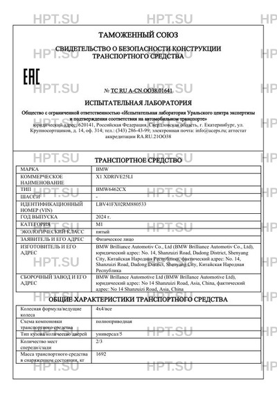 | Предприятие-изготовитель | BMW Brilliance Automotiv Co., Ltd (BMW Brilliance Automotiv Co., Ltd), юридический адрес: No. 14, Shanzuizi Road, Dadong District, Shenyang City, Китайская Народная Республика, фактический адрес: No. 14, Shanzuizi Road, Dadong District, Shenyang City, Китайская Народная Республика |