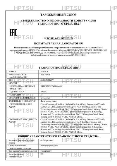 | Марка ТС | JETOUR |