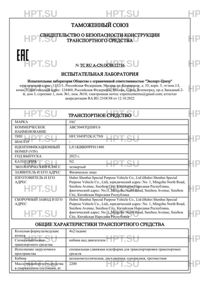 | ДВС | JAC, YN25PLUS1, четырехтактный, с воспламенением от сжатия, с турбонаддувом |