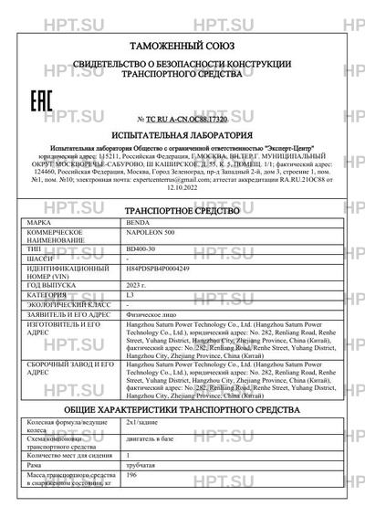 | Коммерческое наименование | NAPOLEON 500 |