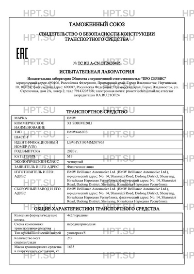 | Предприятие-изготовитель | BMW Brilliance Automotive Ltd. (BMW Brilliance Automotive Ltd.), юридический адрес: No. 14, Shanzuizi Road, Dadong District, Shenyang, Китайская Народная Республика, фактический адрес: No. 14, Shanzuizi Road, Dadong District, Shenyang, Китайская Народная Республика |