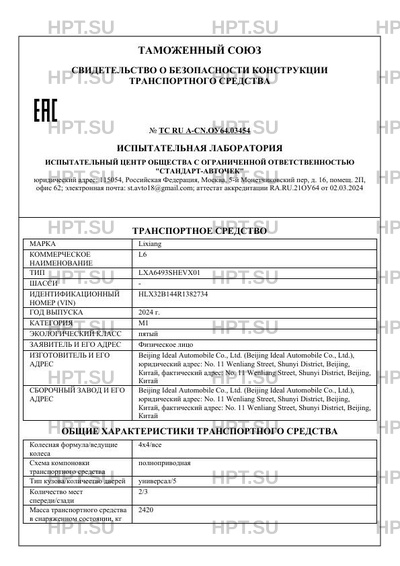 | Предприятие-изготовитель | Beijing Ideal Automobile Co., Ltd. (Beijing Ideal Automobile Co., Ltd.), юридический адрес: No. 11 Wenliang Street, Shunyi District, Beijing, Китай, фактический адрес: No. 11 Wenliang Street, Shunyi District, Beijing, Китай |