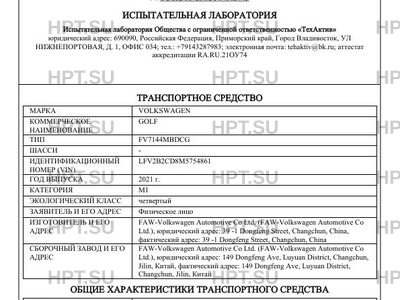 | Предприятие-изготовитель | FAW-Volkswagen Automotive Co Ltd. (FAW-Volkswagen Automotive Co Ltd.), юридический адрес: 39 -1 Dongfeng Street, Changchun, China, фактический адрес: 39 -1 Dongfeng Street, Changchun, China |
