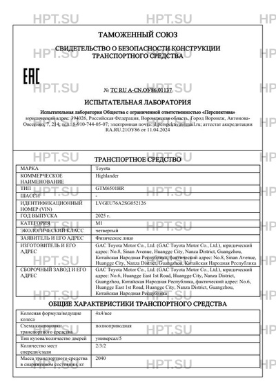 | Предприятие-изготовитель | GAC Toyota Motor Co., Ltd. |