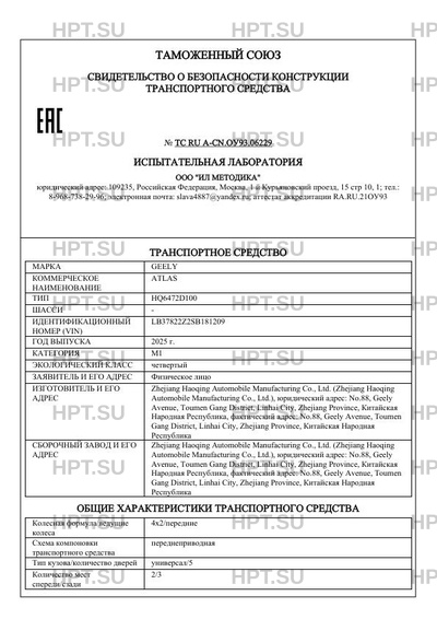 | Предприятие-изготовитель | Zhejiang Haoqing Automobile Manufacturing Co., Ltd. (Zhejiang Haoqing Automobile Manufacturing Co., Ltd.), юридический адрес: No.88, Geely Avenue, Toumen Gang District, Linhai City, Zhejiang Province, Китайская Народная Республика, фактический адрес: No.88, Geely Avenue, Toumen Gang District, Linhai City, Zhejiang Province, Китайская Народная Республика |