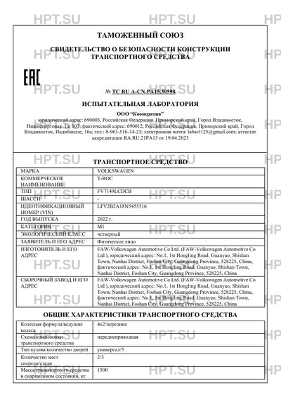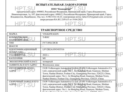 Предприятие-изготовитель FAW-Volkswagen Automotive Co Ltd.