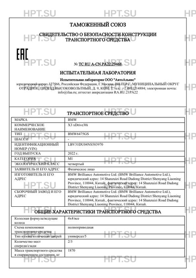 | Номер документа | ТС RU А-CN.РА22.29468 |