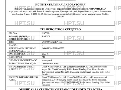 Предприятие-изготовитель Great Wall Motor Co., Ltd. (Great Wall Motor Co., Ltd.), юридический адрес: No. 2266 Chaoyang South Street, Baoding City, Hebei Province, фактический адрес: No. 2266 Chaoyang South Street, Baoding City, Hebei Province