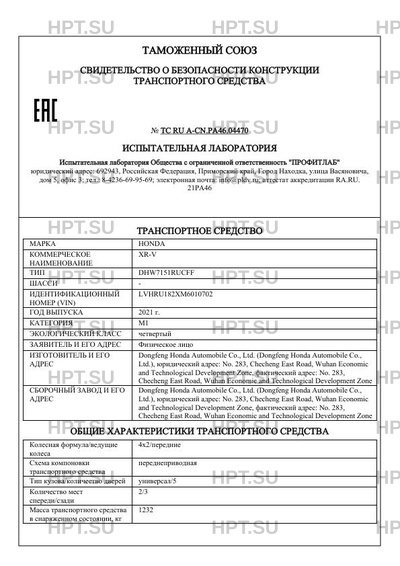 | Коммерческое наименование | XR-V |