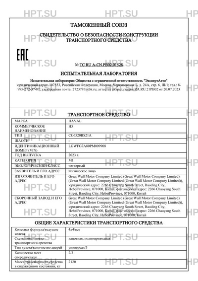 | Марка ТС | HAVAL |