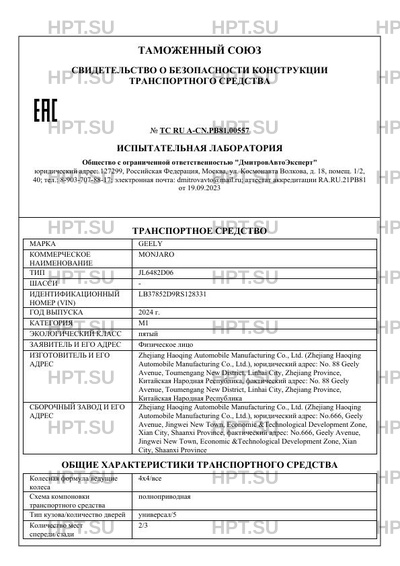 | Предприятие-изготовитель | Zhejiang Haoqing Automobile Manufacturing Co., Ltd. (Zhejiang Haoqing Automobile Manufacturing Co., Ltd.), юридический адрес: No. 88 Geely Avenue, Toumengang New District, Linhai City, Zhejiang Province, Китайская Народная Республика, фактический адрес: No. 88 Geely Avenue, Toumengang New District, Linhai City, Zhejiang Province, Китайская Народная Республика |