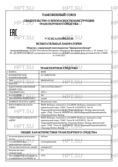 Тип ТС BMW6495AX