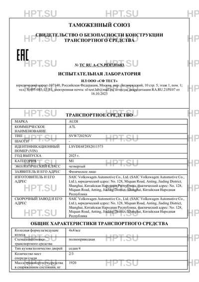 | Тип ТС | SVW72025GV |