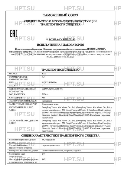 | Предприятие-изготовитель | Dongfeng Yueda Kia Motor Co., Ltd. (Dongfeng Yueda Kia Motor Co., Ltd.), юридический адрес: 27F Guoji Financial Center 1 Hanzhong Road Nanjing, 210005, Китайская Народная Республика, фактический адрес: 27F Guoji Financial Center 1 Hanzhong Road Nanjing, 210005, Китайская Народная Республика |
